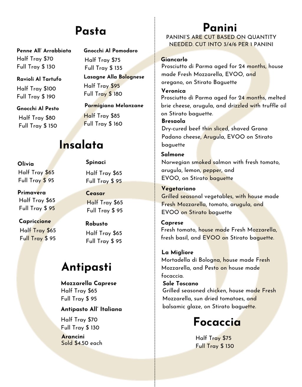 ALL CATERING ORDERS ARE TO BE PICKED UP AT OUR WAYNE LOCATION