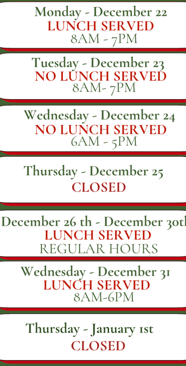 Holiday Hours